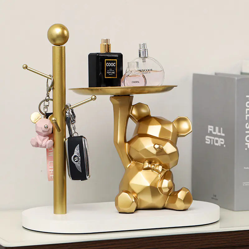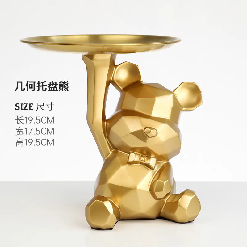 Creative Geometric Tray with Bear - Modern Home Decor