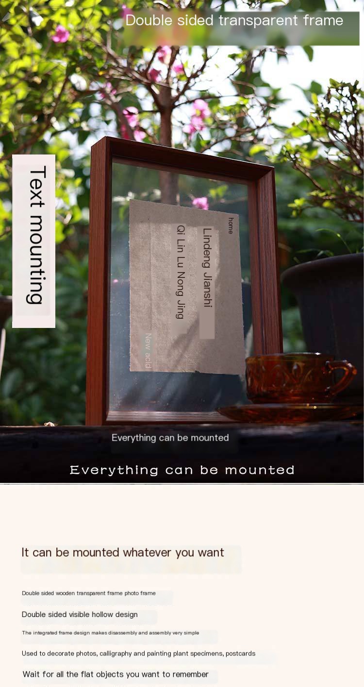 Introducing our stunning Double-Sided Transparent Frame , perfect for showcasing your favorite memories! Whether you want to display pressed flowers , photographs, or art, this versatile frame seamlessly adapts to any setting, making it ideal for tabletops or wall hanging.
